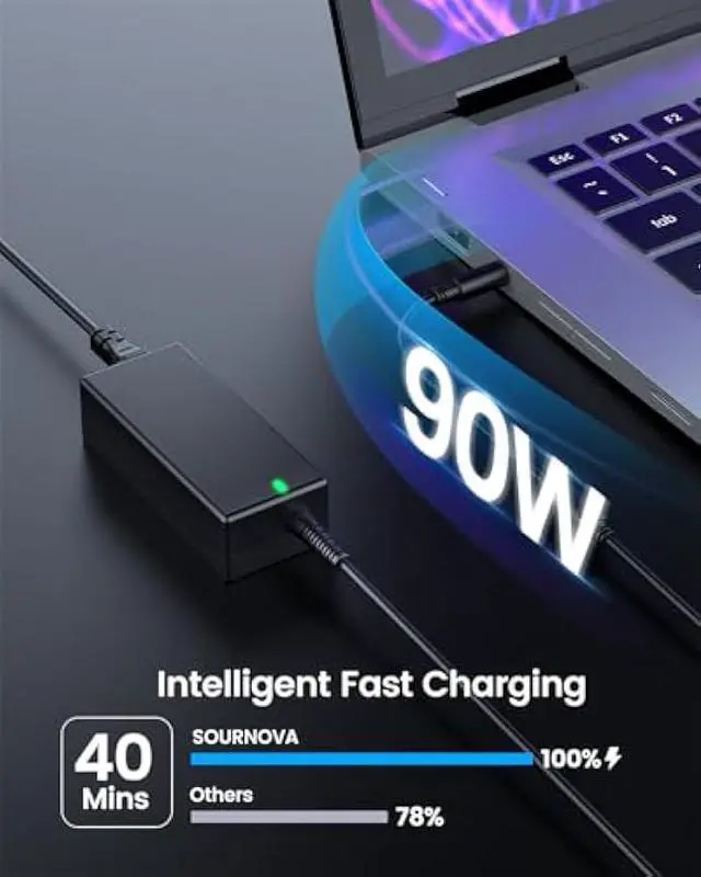 100% Original Quality - SOURNOVA compatible with Dell 90W Inspiron charger built-in original dynamic software and hardware systems to intelligently learning your daily charging routine to reduce battery aging and intelligently monitoring temperature to safeguard your Dell Laptop. Protect against overcharging, short circuiting, overheating, spark