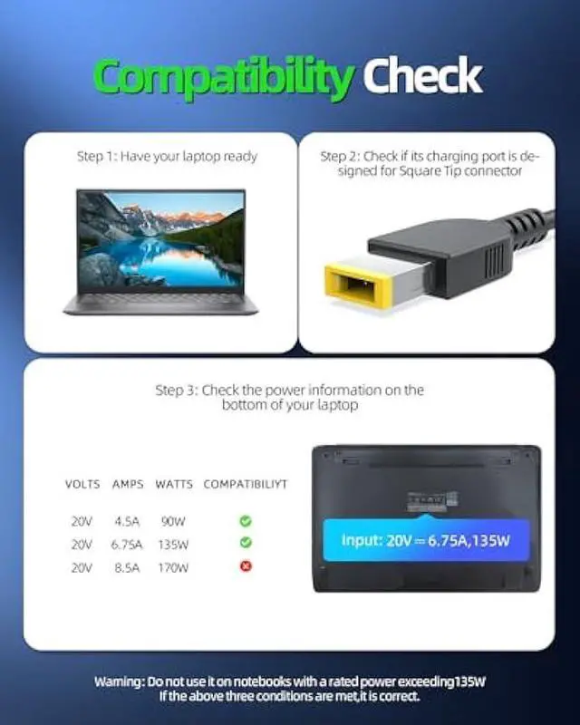 Fit for Lenovo ThinkPad Thunderbolt Universal 3 4 Smart Essential Dock Gen 1 2, Ultra Pro Docking Station, ThinkPad Thunderbolt 3 Dock Gen 2, Thunderbolt 3 Essential Dock Gen 1 2, ThinkPad Thunderbolt 4 WorkStation Dock, ThinkPad Hybrid USB-C with USB-A Dock US, ThinkPad Ultra Docking Station, Thinkpad Pro Docking Station, ThinkPad USB-C Dock Gen 2 ThinkPad USB-C Dock, ThinkVision X1 Gen 1 2 LT2223d Monitor Laptop [Do not buy if your laptop requires more than 6.75A ].