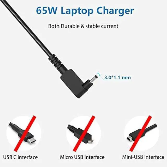 Interface: 3.0 * 1.1 mm 100% Brand New Laptop Charger Power Supply.
