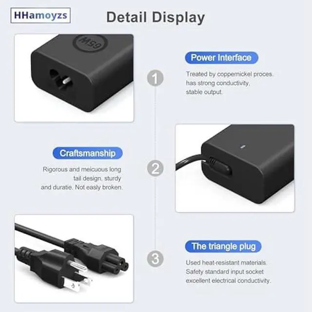 HHamoyzs charger Chip upgrade, lighter, charging faster and more stable. 65w laptop charger usb c compatible with Inspiron 14 16 5000 7000 series.