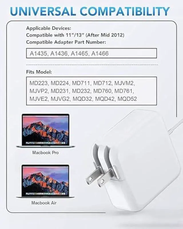 Replacement charger AC adapter for Mac Air 11 and 13.3 after 2012 with