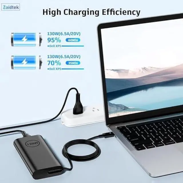 Zaidtek 130W USB C Laptop Adapter Compatible with Dell Inspiron Alienware Series, Dell Inspiron 16 Plus 7620 7630 7640 2 in 1, Inspiron 14 Plus 7420 7430 7440 7445 2 in 1, Inspiron 17 7706 7773 7778 7779 7786 7791 2-in-1, Dell Alienware X14 R1 X14 R2 M17 R3