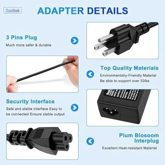 Zaidtek Laptop Adapter Compatible with Dell P/N, T4V18 0K00F5 0M0H25 0TDK33 0Y2XGV 0CT1P3 07MP1P 0MW1G8 M0H25 450-AHOM DA130PM170 HA130PM170 XPS9575-7354BLK-PUS