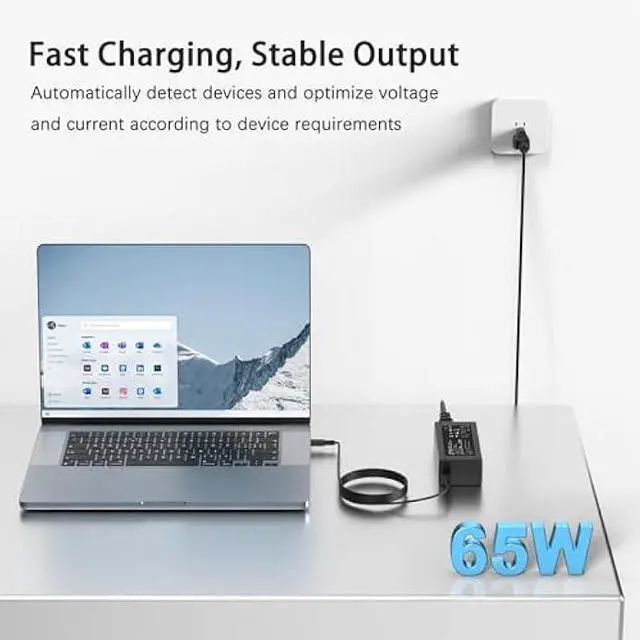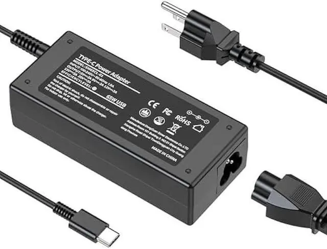Specifications-USB C/Type C Computer Charger Input: 100-240V- 1.5A 50-60HZ, Output: PD 5V=3A 9V =3A 12V=5A 15V= 4.33A 20V= 3.25A, Power: 65W Max, Connector: Type C /USB C