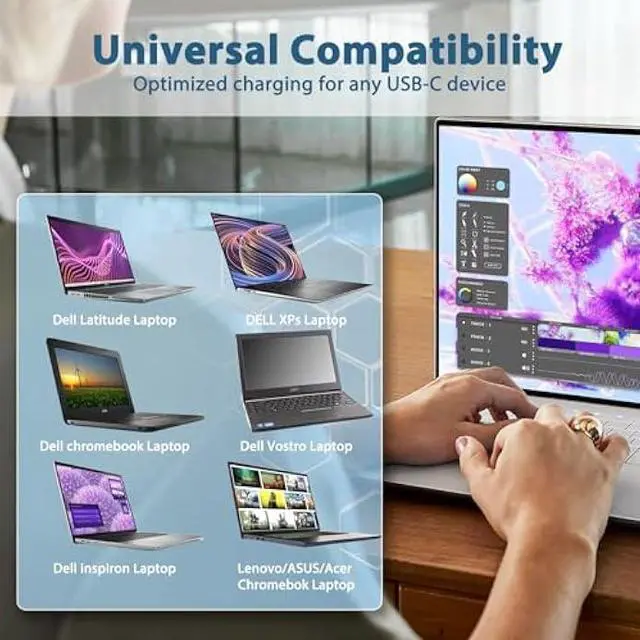 Comaptible With Dell Latitude Laptop Charger: Compatible with Dell Latitude 5540 5520 5330 5340 5430 5440 5530 5550 5450 5289 5290 5320 5400 5175 5190 5179 5285 5420 5421 E5430 e5440; Latitude 7430 7340 7440 7530 7640 7330 7455 7350 7450 7650 7320 7275 7520 7200 7310 7285 7370 7380 7390 7212 3120 7210 7400 7410 7420; Latitude 9430 9330 9420 9520 9410 9510; Latitude 5430 7330 Rugged Extreme P137G P133G P134G P148G P149G Dell USB C Charger.