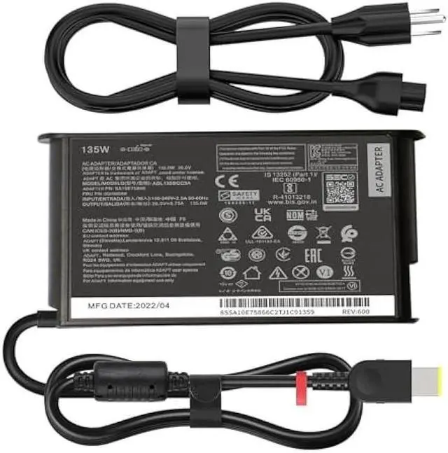135W AC Charger Fit for Lenovo ThinkPad X1 Extreme Gen 1 2 3 4 5 IdeaPad Gaming 3-15 L340 Yoga Y50-80 Y50P Y50P-70Y Y40-70 Y50-70 Laptop Adapter Power Cord