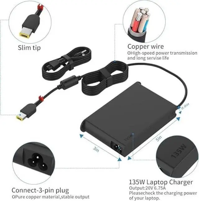 Widely compatible models: Fit for 135w charger T431s, T440, T440p, T440s, T450, T450s, T460, T460p, T460s, T470, T470p, T470s, T540p, T550, T560, T570, T Helix (1st Gen), S1 Yoga 12, S3 Yoga 14, S5 Yoga 15, Yoga 14, Yoga 260, Yoga 370, Yoga 460, W540, W541, W550s, X1 Carbon (3rd Gen), X1 E440, E450, E455, E460, E465, E470, E475, E540, E550, E550c, E555, E560, E560p, E565, E570, E570p, E575, S431, S440, S531, S540, L440, L450, L460, L470, L540, L560, L570, P40 Yoga, P50s, P51s