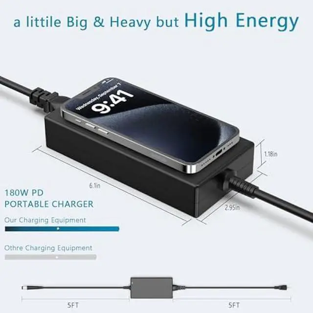 One for School[Specifications] Input 100-240V 50-60Hz Output: 19.5V - 9.23A Watts 180 Watts Compatible with Dell Laptop Charger (Aslo fit130w)