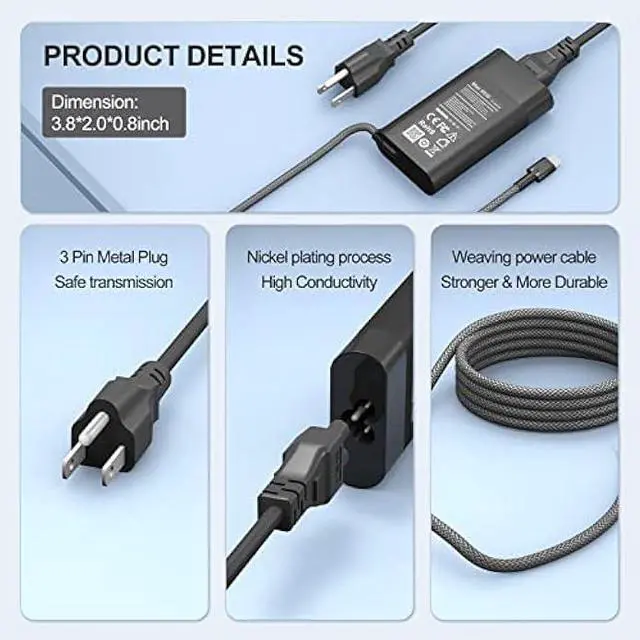 Output: 5V~3A /9V~3A /12V~3A /15V~3A /20V~ 3.25A, Power: 65w USB Type-C / USB-C