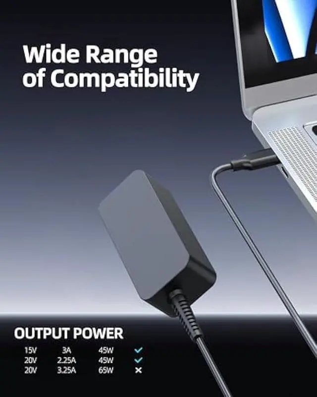 • Fit for Lenovo Chromebook Laptop. [It won't charge your device if it needs power over 45W].