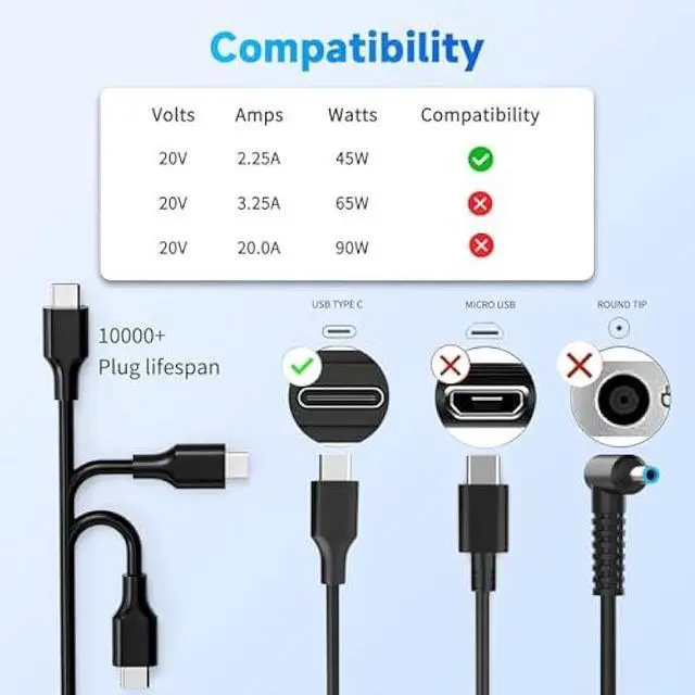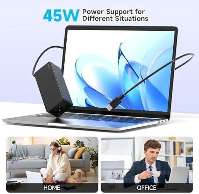 ROLODA charger Compatible with Chromebook laptop USB-C 45W; Compatible with l42206-002 Chromebook X360 14 14A 11 11A 14-ca051wm 14-ca052wm 11-ae000 14-ca020nr 11-ae027nr 12-c012dx 12-f014dx G5 G6 G7 G8 Series; Chromebook Spin 11 13 R13 15 CB311 314 CB314 CB315 511 512 514 CB514 713 CB713 714 CB714 715 CB715 CP311 CP713 SF713 SF714 C721 C732 C733 C771 C933 N16Q12 N17Q5 N18Q1; Part Nos. LA45NM150/AA45NM150, XPS 13 9350 9360 9365 9370 9380, Latitude Series