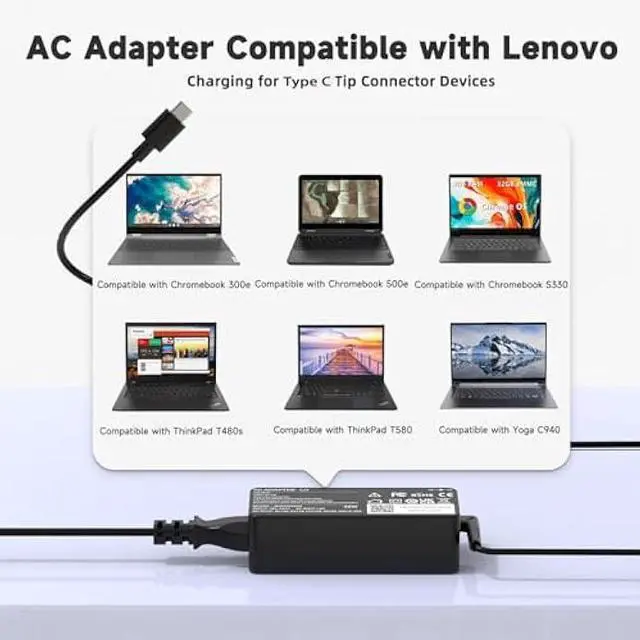 ROLODA charger Compatible with 100e 300e 500e Chromebook c340 s330 s340 c300e c630 Yoga, ThinkPad A485 T470 T470s T480 T480s T580 T580s T490 T490s T495 T495s T590 E480 E485 E580 E585 E490 E490s E495 E590 E595 L380 L390 L480 L490 L580 L590 X270 X280 X380 X390 X395 X280 X380 X39, Yoga ThinkPad 13, Chromebook 2nd Generation model 81ma