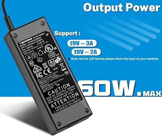 Input Voltage: 100-240V, 50-60Hz, Output: 19V 3A 60W, ( it is not fit the 12V gateway charger)