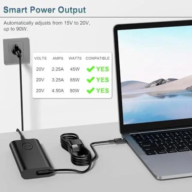 Fast, Reliable Charging Anytime, Anywhere - Deliver up to 90W of powerful USB-C charging Compatible With your Dell laptop fully compatible with 45W, 60W, and 65W devices too. Whether you're working from home, the office, or on the go, this adapter keeps you powered without compromise.