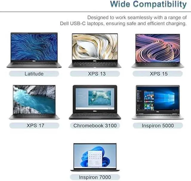 Universal Compatibility with Dell USB-C Laptops - Designed to work seamlessly with a wide range Compatible With Dell models, including Latitude, XPS, Precision, and Chromebook series. No guessing just plug in and power up. (Note: Not for laptops requiring over 4.5A or non-USB-C ports. )