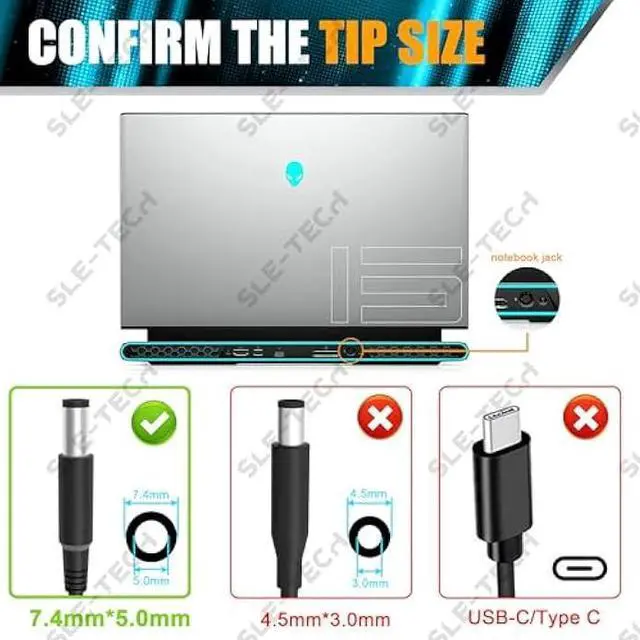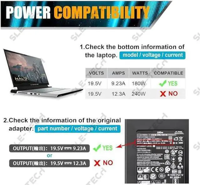 Input: 100V-240V 50-60Hz, Output: 19.5V 9.23A SLE-TECH 180W Laptop Charger Compatible with 150W 130W, Connecter