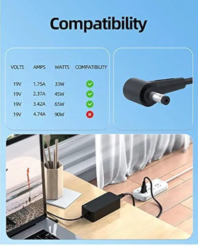 Output: 19V 3.42A 65W(Compatible with 19V 2.37A 45W)