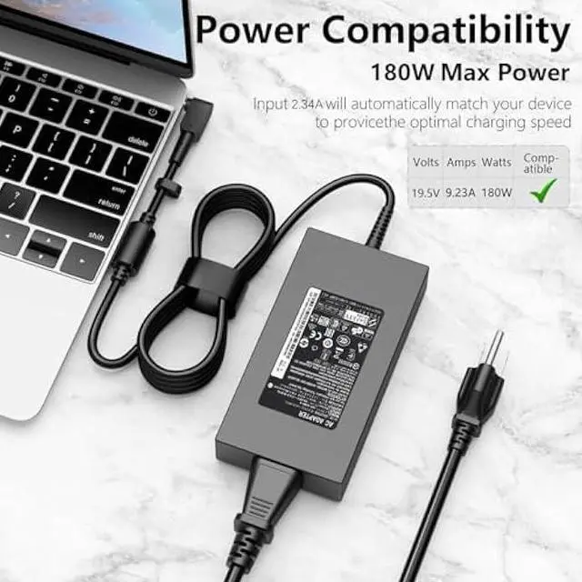 Output: 19.5V ~ 9.23A 180W (Compatible with 135W 19V~ 7.1A ); AC Input 100V ~ 240V 2.34A 50 ~ 60Hz;