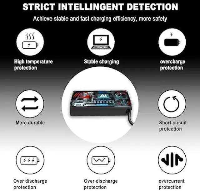 Multi-Protection: Over-Charge Protection; Over-Voltage Protection; Over-Temperature Protection; Over-Current Protection; Short-Circuit Protection; Lightning Protection.