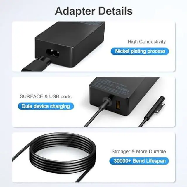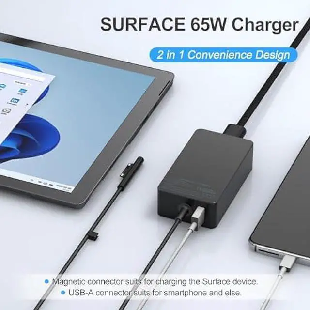 65W surface laptop charger is designed to provide fast and efficient charging for your Windows laptop, for Microsoft Surface laptop, and other compatible devices.
