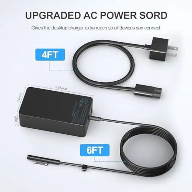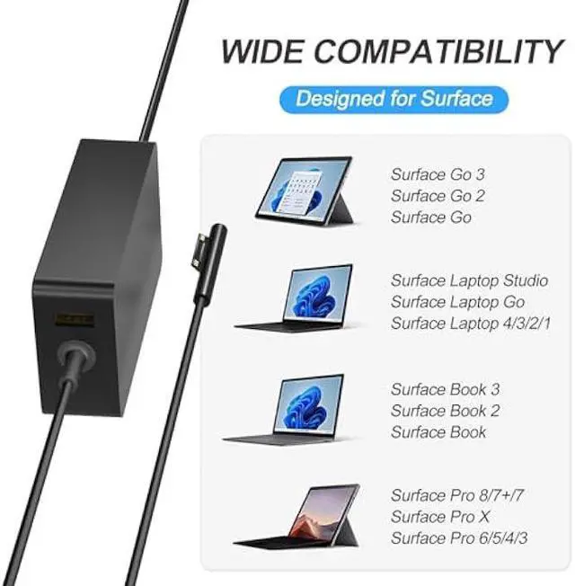 Compatible with Microsoft Surface Pro 9, 8, 7+, 7, 6, 5, 4, 3, X, Windows Surface Laptop 5, 4, 3, 2, 1, Studio, Surface Book 1, Surface Go Laptop/Tablet 3, 2, 1. perfect match surface model 1706, 1866, 1796, 1724, 1625, 1867, 1735, 1800 and so on