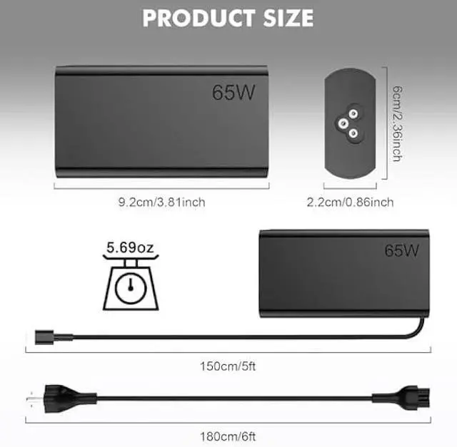 Safe & Reliable: Built-in surge/overheat/short-circuit protection. UL/FCC/CE certified for 100% safety with Lenovo 65W USB C charger standards. High-grade copper-core USB C cord ensures stable power delivery.
