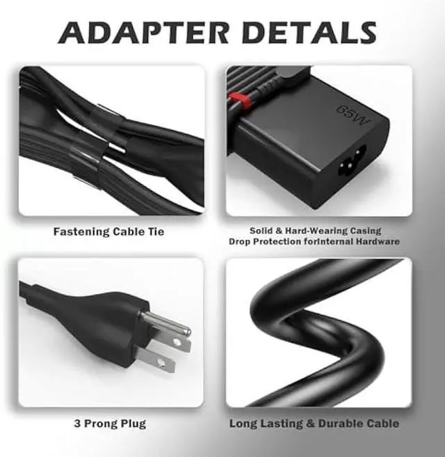 Universal Compatibility: This 65W USB C laptop charger is engineered for Lenovo Thinkpad (T14/T15/T16/X1 Carbon Gen 12/11), Yoga (7i/9i/C940/S730), Chromebook (500e/C340/S340), ThinkBook, and IdeaPad series. Replaces Lenovo ADLX65YLC2A, ADLX65YCC3A and 12+ other OEM models.