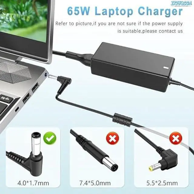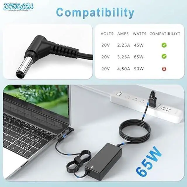 IKFJQCOA Durability and High Quality: Our 65w laptop charger have a service life of at least 10, 000 hours and we use high-quality bold cables on the interface to ensure stable connections. The triangular plug uses high-precision metal so its high-speed transmission does not get hot and keeps getting fast