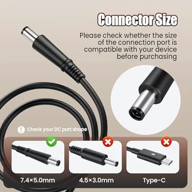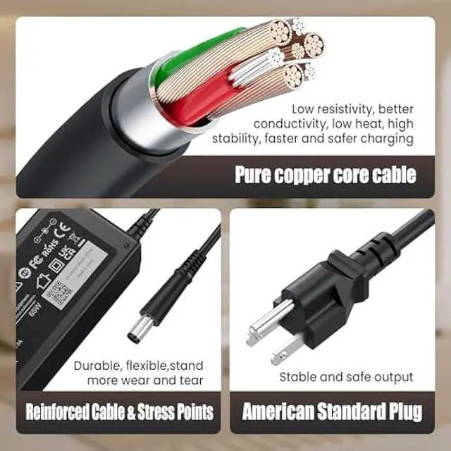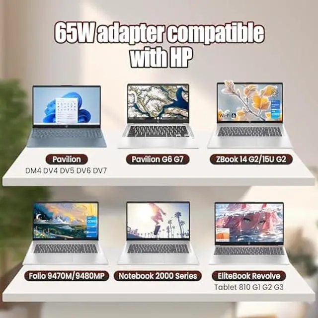 65W Charger Power Cord Compatible with HP EliteBook Revolve 810 G1 G2, 820 G1, 840 G1, 850 G1, 725 G2, 745 G2, 755 G2; HP EliteBook Folio 9470m 9480m; HP ProBook 430 G1 G2, 440 G1, 450 G1, 455 G1, 645 G1, 650 G1, 655 G1; HP 250, 255 G