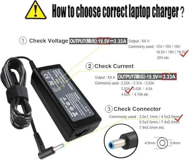 Output: 19.5V 3.33A 65W (Also compatible with 19.5V 2.31A 45W)