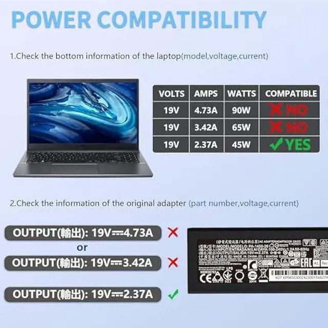 Compatible with Acer Aspire 1 A115-32 A115-32-C96U Aspire 3 A314-22 A314-23P A314-23P-R3QAA314-36P A314-36P-3 A315-24PA315-24P-R7VH A315-35 A315-58A315-58-350LA315-23 A315-59 A315-59-53ERA317-53 A317-54A317-55PA514-55 A515-45A517-52