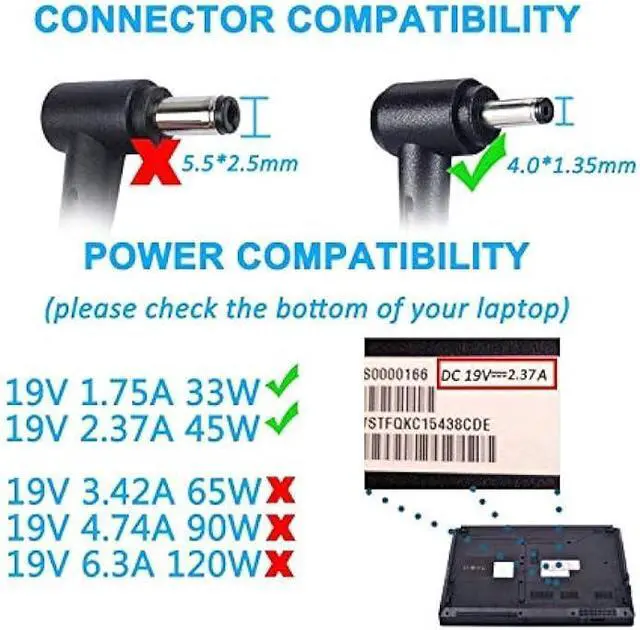Compatible with Asus Q302 Q302L Q302LA Q302U Q302UA Q303 Q303U Q303UA Q304 Q304U Q304UA Q503 Q503U Q503UA Q504 Q504U Q504UA Q553 Q553U Q553UB. AWS POW Portable Laptop Charger for Asus Notebook AC Adapter Power Charger Supply Cord - Foldable Plug