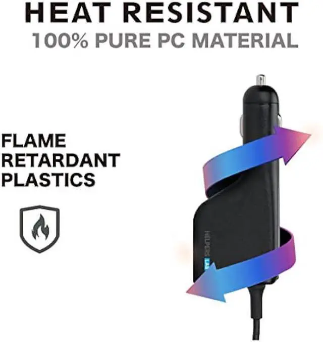 BUILD: Thanks to the sturdy and flame retardant build, HELPER computer car charger adapters offer faster heat dissipation and thermal conductivity to increase their lifespan. We use a pure copper core for the wires that are temperature resistant and provide long term use.