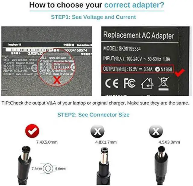 Jeestam 65W Adapter Laptop Charger Compatible for Dell Chromebook 11 3180 3181 3189, Dell Inspiron n5110 n7010 n5010 n4010 n7110 n5050 n4110, Dell Inspiron 14 15 3000 5000 7000 Series 7537 7548 Inspiron 15 15R Series 1545 1525 1564 N5040 5520 Inspiron 17 17R Series 1720 1764