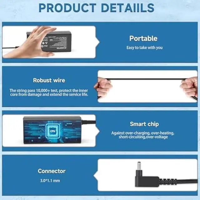 Laptop Adapter Compatible with Chromebook R11: CB3-111, CB3-111-C670, CB3-111-C8UB; CB3-131, CB3-131-C3SZ, CB3-131-C3KD; CB3-132, CB3-132-C4VV; C720 C720P C731 C738T C740 C810 C910 series: C720-2103, C720-2420, C720-2800, C720-2808, C720-2827, C720-2844, C720-2848, C720-3404, C720-3605, C720-3871; C720P-2457, C720P-2625; C731-C8VE, C738T-C44Z, C738T-C7KD, C740-C3PI, C740-C4PE
