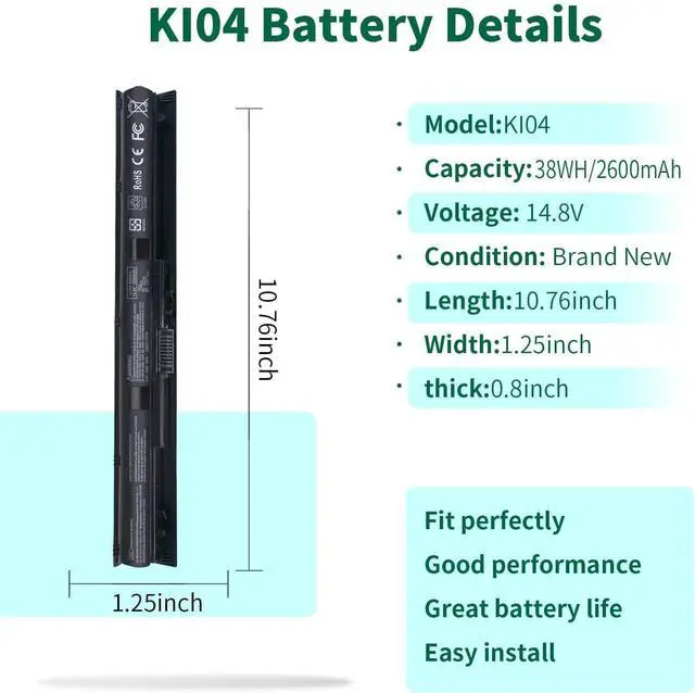 Name: KI04 Notebook Battery, Voltage: 14.8V (Compatible with 14.4V and 14.6V ), Capacity: 2600mAh/38wh (Better than 2200mAh);