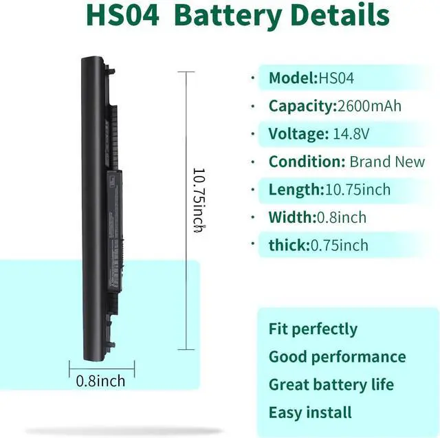 What You Get: HS04 Battery, User Manual for 807956-001 hp battery replacement. We offer a 60-day return. For assistance with the hp laptop battery replacement 807956-001, please visit our product detail page.