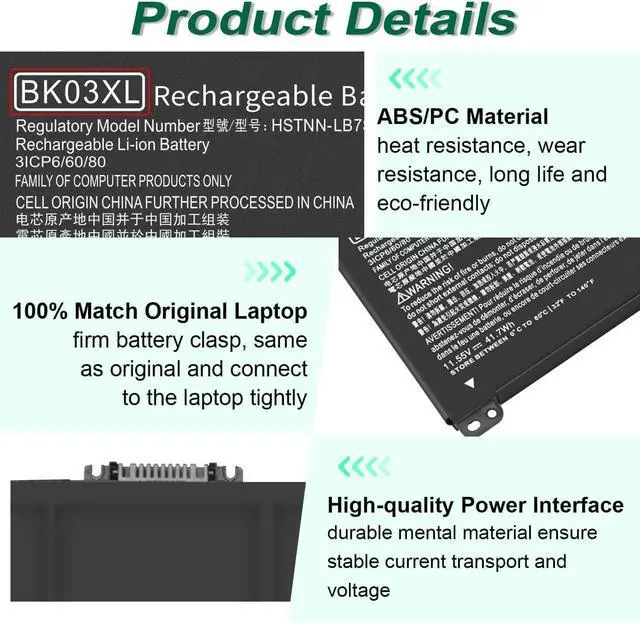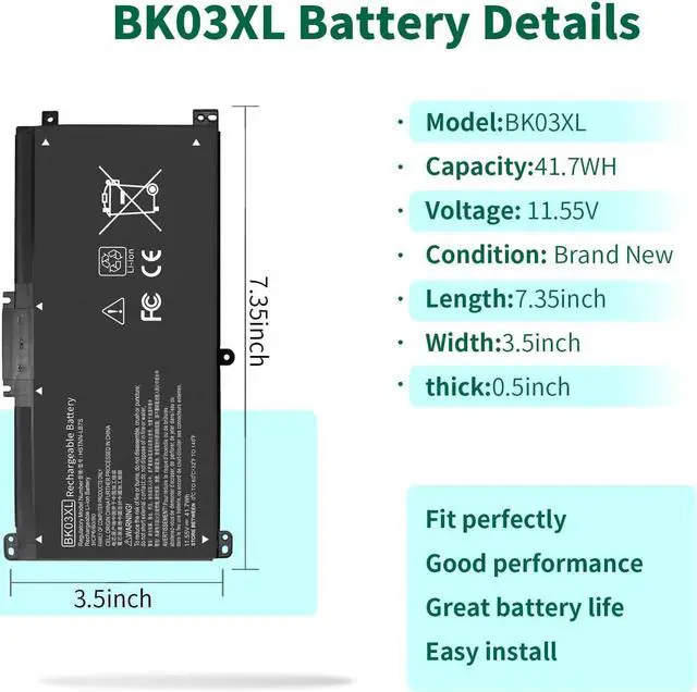 Quality and Certification: Our BK03XL battery is highly compatible with the original HP Pavilion x360 Battery BK03XL and meets CE/FCC/ROHS/UL certified standards. It is a brand-new product from the manufacturer and supports up to 1000 recharge cycles.