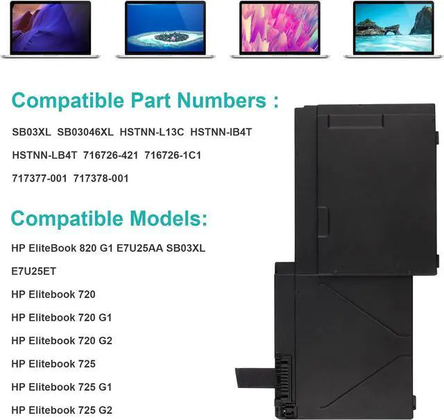 Compatible the ModelsHp EliteBook 820 G1, HP EliteBook 720 G1, HP EliteBook 720 G2, HP EliteBook 725 G1, HP EliteBook 725 G2 E7U25AA E7U25UT F6B38PA