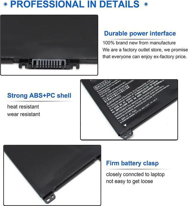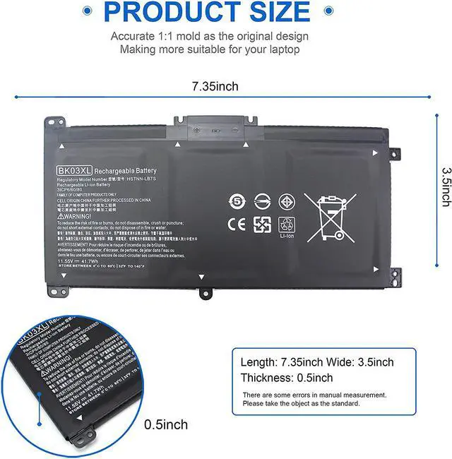 type: 3 A+ cells / Lithium-ion, 100% brand new, Black with two Screwdrivers for easy installation. Grade A cells ensure fast charges and low power consumption. Each of our BK03XL Battery for HP Pavilion X360 is CE-/FCC-/RoHS-Certified.