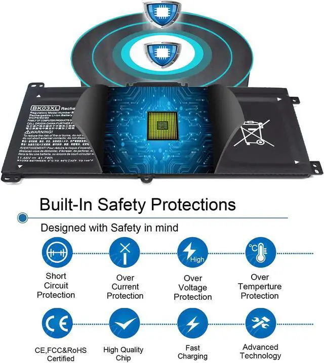 SECURITY & RELIABILITY: Our BK03XL 916811-855 Batteries for HP are assembled from top quality material and circuit boards to ensure fast charges and low power consumption, 100% New from Manufacturer, Overcharge and Over-discharge Circuit Protection, Over-temperature and Short-circuit Protection, up to 500 recharge cycles over the life of the battery, meet OEM standard. You can buy it with confidence and use it safely.