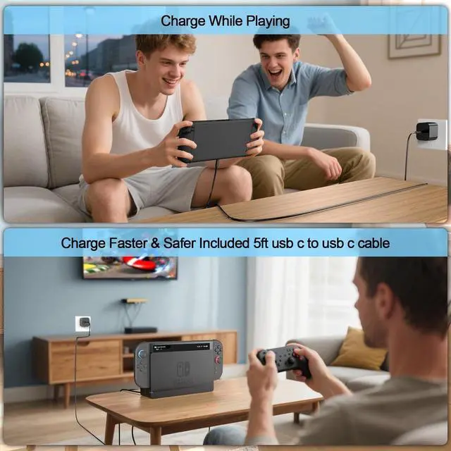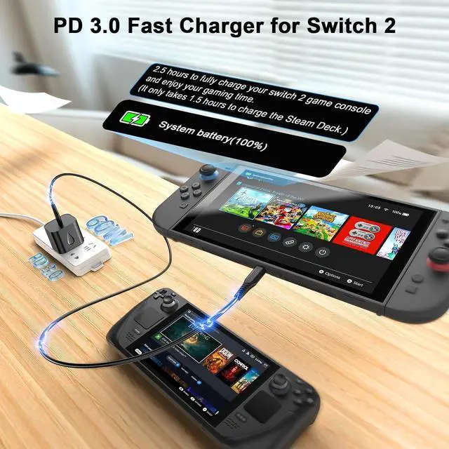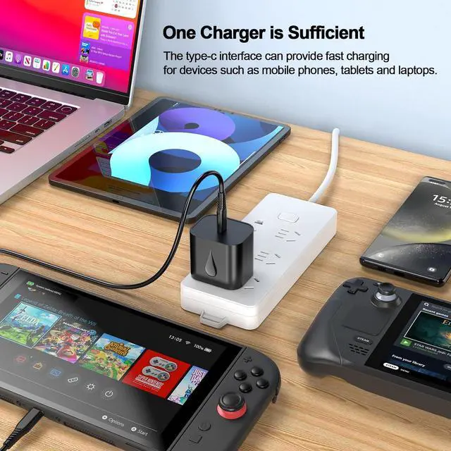 THE PERFECT ALTERNATIVE TO THE ORIGINAL CHARGEROur USB-C switch 2 charger is the perfect alternative to the original chargers of Nintendo Switch 2 and steam deck. From voltage output to pd 3.0 fast charging protocol support its design is fully compatible with OEM chargers. Furthermore due to the universal USB-C compatibility this charger is also applicable to other devices such as for Steam Deck Rog Ally MacBook Laptops and smart phone tablet etc. DUAL PROTECTION SYSTEMOur switch 2 charger for the Nintendo Switch 2 and Steam Deck is equipped with an advanced dual protection system providing comprehensive safeguards against overvoltage overcurrent overheating and short circuits.