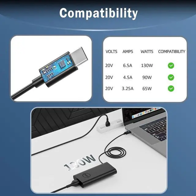 Connector Size: USB Type C. PLEASE CONFIRM THE SPECIFICATIONS OF YOUR POWER ADAPTER BEFORE ORDERINGCompatible with 130W charger designed for XPS 15 9575 2-in-1 XPS 15 9500 17 9700 Latitude 7410 7310 7210 9410 5420 5520 5320 5411 5510 5511 5310 5410 Precision 5550 5750 3560 3550 3551 Precision 5530 2 in 1Compatible with 130W AC Adapter Replacement XPS 15 9575 2-in-1 4K