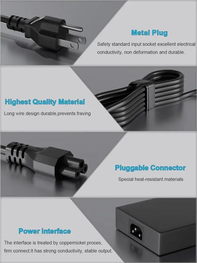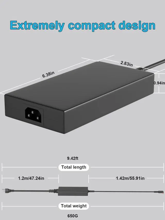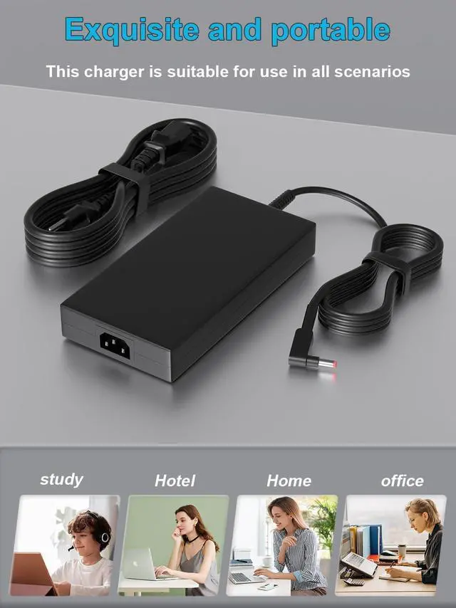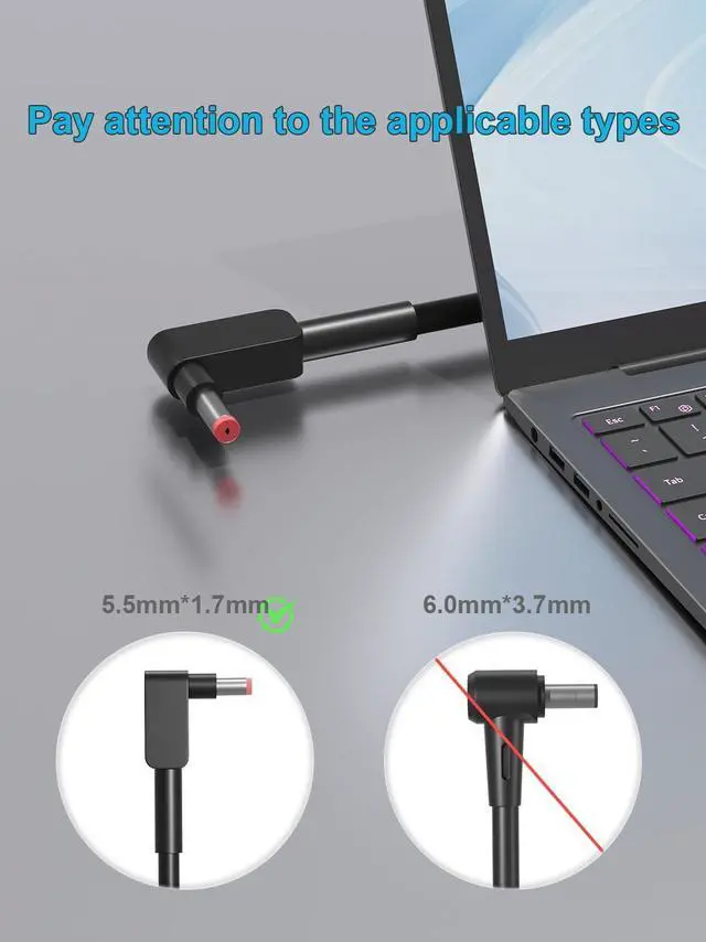 Power Jack Connector Type: 5.5 mmx 1.7 mm Round Tip. (It is not fit for laptops devices requiring more than 230W) Stable Compatibility; Experience faster more reliable charging with this Portable charger. Lightweight and compact size makes it easy to pack for business trips vacations or daily use at the office. Durable Construction and Made with heat-resistant materials for extended durability. The built-in chip automatically adjusts power based on your devices temperature and battery status. Less heat safer charging and a battery that lasts longerSafe