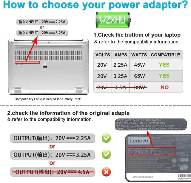 50-60HzConnector: Yellow square tip Not USB C Charging TipWZXHU 65w Laptop Charger Compatible with Thinkpad Laptop T470 T460 T470S T460S T450 T450S T430 T440 T440S T440P T560 E440 E450 E540 E550 E560 ComputerWZXHU 65watt Power Cord Compatible with G40 G50 G70 G40 30 G40 45 G40 70 G40 80 G50 30 G50 45 G50 70 G50 75 G50 80 G70 35 G70 80 Z40 Z40 70 Z40 75 Z70 Z70 80 Z70 70 Y50 Y50 70 G400S S405D G410 G500S G505S G510S S410P S510P Yoga 2 13 11S Pro IdeaPad 300 500 Flex 3 10 14 15 x240 series incl NotebookWZXHU Compatible Part Numbers ADP-65FD B ADLX65NCC3A SA10J20098 ADLX65NLC3A ADLX45NDC3A ADLX45NLC3A ADLX65NCC2A ADLX65NDC2A ADLX65NLC2A ADLX45NCC3A ADLX65NDC3A ADLX65NDT3A ADLX65SLC2A ADLX65SDC2A ADLX45NCC2A ADLX45NDC2A ADLX45NLC2A ADLX45DLC2A ADLX45DLC3A ADLX65NDC3