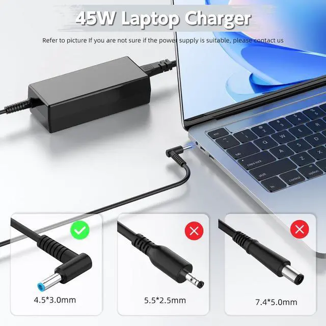 Connector Size: 4.5 mm* 3.0 mm Blue Tip. Do not buy if your laptop requires more than 2.31AROLADA Laptop Charger Compatible withr HP Model 15-dy Series- 15-dy1031wm 15-dy1036nr 15-dy1059ms 15-dy1005la 15-dy1024wm 15-dy1023dx 15-dy0013dx 15-dy2021nr 15-dy1043dx 15-dy1001ds 15-dy1042cl 15-dy1003ds 15-dy0015ds 15-dy2071wm 15-dy2041nr 15-dy1025nr 15-dy2085nr 15-dy2152wm 15-dy1032wm 15-dy5399nr 15-dy2087nr 15-dy2044nr 15-dy2073dx 15-dy2193dx 15- dy2005tg 15-dy2035tg 15-dy151wm etc. Power Adapter Compatible with Model 15 15-da 15-db 15-dq Series- 15-da0002dx 15-da0012dx 15-da0079nr 15-da0032wm 15-da0083od 15-da0033wm 15-da0073wm 15-da0009ds 15-da0023la 15-da0012ds; 15-db0011dx 15-db0015dx 15-db1003dx 15-db0005dx 15-db0031nr 15-db0091wm 15-db0001dx; 15-dq1071cl 15-dq1095nr 15-dq2033ca 15-dq0953cl 15-dq0095nr 15-dq0077nr etc. (For More Compatible Models Please Use Ctrl+ F To See In