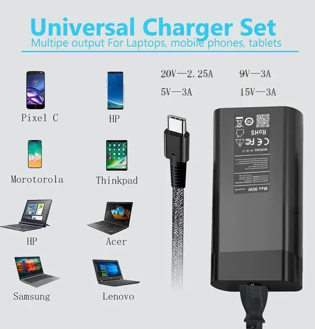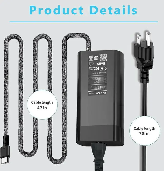 Protectiveness: Compatible with laptop charger usb c delivers up to 90W of power enabling fast and efficient charging for compatible devices. Certified by CE and FCC it provides advanced protection against current overload overvoltage short circuits and overheating. The durable cable is designed to withstand daily wear and tear ensuring long-lasting performance even with frequent use.