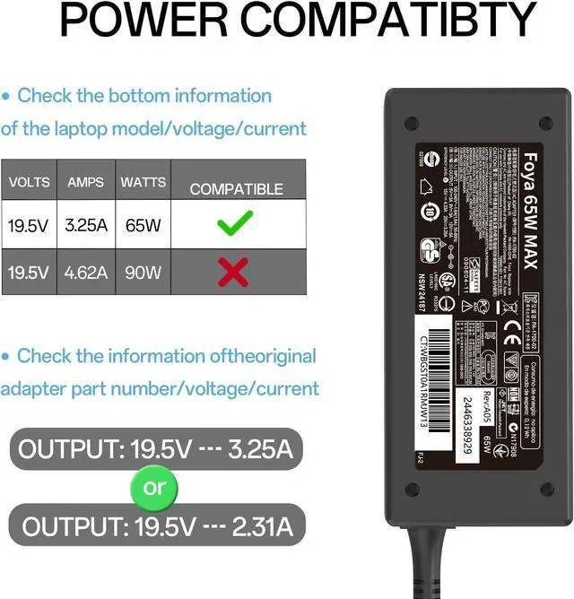L43407-001Notice: Please check that the power required for your computer is 65W 20V 3.25A (Type C USB-C tip) before purchasing to make sure you get the right adapter[Package] 1x 65W USB-C AC Adapter & Power Cord