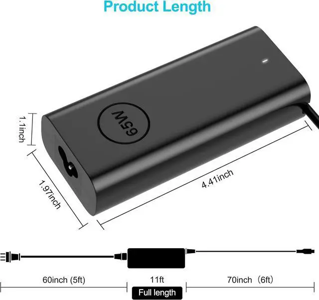 Connector Size: Type C / USB C (PD 3.0 Charger)Compatibility for Work Compatible with Laptop charger USB C for Latitude 10 11 12 13 14 15 17
