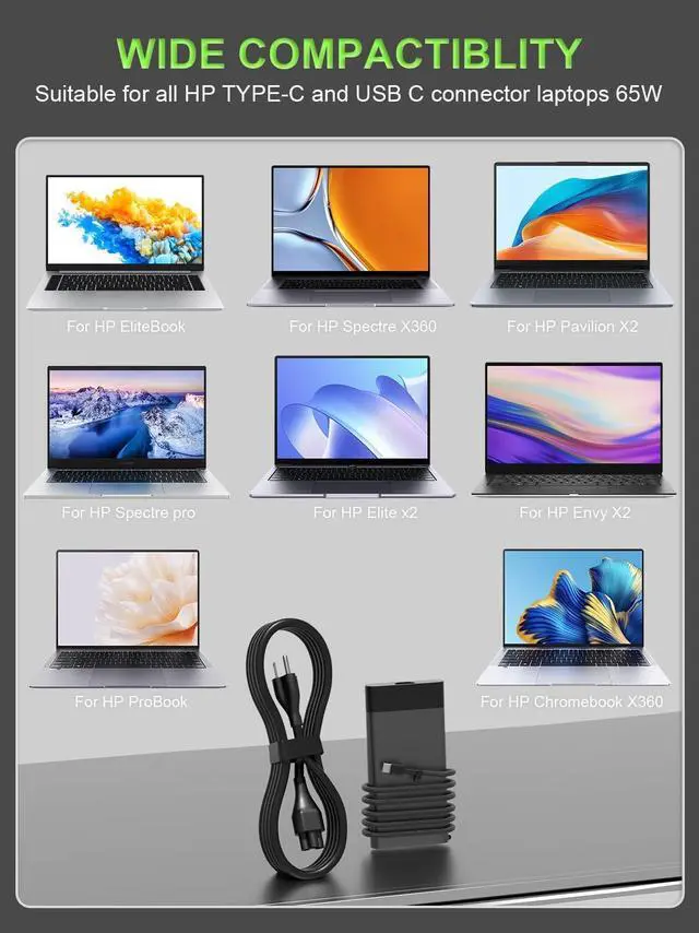 Compatible with OmniBook 3/5/7/X/Ultra Flip ZBook Firefly 14 16 inch G9 G10 G11 Spectre X360 13 14 2-in-1 Spectre X2 Envy X360 16 14 2-in-1 Envy X2 Pavilion X2 Pavilion Plus 14 16 ProBook 4 G1i G1q G1a G1aH ProBook x360 435 ProBook 650 645 640 635 630 460 465 455 455R 450 445 445R 440 430 Chromebook x360 Chromebook 11 13 15 11a 14a 14C 14B 12B 14-CA 14-DA 15-DE Laptop Computer Replacement Charger Power Supply Adapter CordCompatible with EliteBook 6/8/Ultra/X Flip G1q G1i G1a G1ah G1q8 EliteBook x360 830 840 865 860 855 850 845 835 755 745 735 665 660 655 650 645 640 630 EliteBook x360 1020 1030 1040 830 840 Elite x360 1040 G10 G11 2-in-1 Elite x2 1012 1013 Elite x2 G4 G8 Tablet Elite Dragonfly G1 G2 G3 G4 Chromebook Elite c645 c640 c1030 Pro x360 Fortis G9 G10 G11 Chromebook Fortis x360 G3 J G5 Chromebook ProBook Fortis G9 G10 Fortis G1i G1m Chromebook Pro Tablet 608 G1 Pro x2 612 G2 x2 210 G1 G2 ZHAN 66 Pro X13 13 14 15